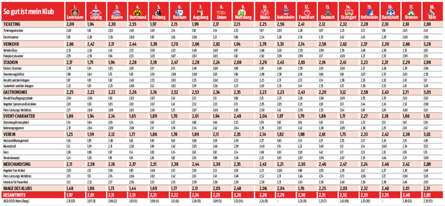 Bundesliga Barometer - Zufriedenheitsranking 2024